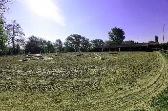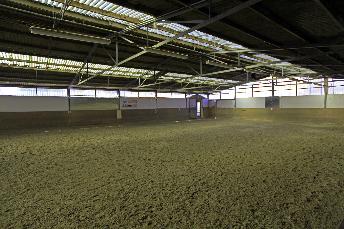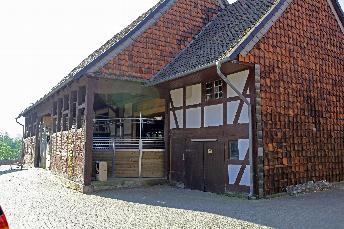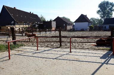 Zusätzlich können in direkter Nachbarschaft eine Reithalle, ein großer Reitplatz sowie eine ovale und überdachte Ganzjahresführanlage genutzt werden.